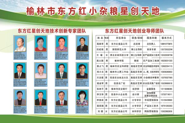榆林市東方紅小雜糧星創(chuàng )天地技術(shù)創(chuàng )新專(zhuān)家團隊和創(chuàng )業(yè)導師團隊